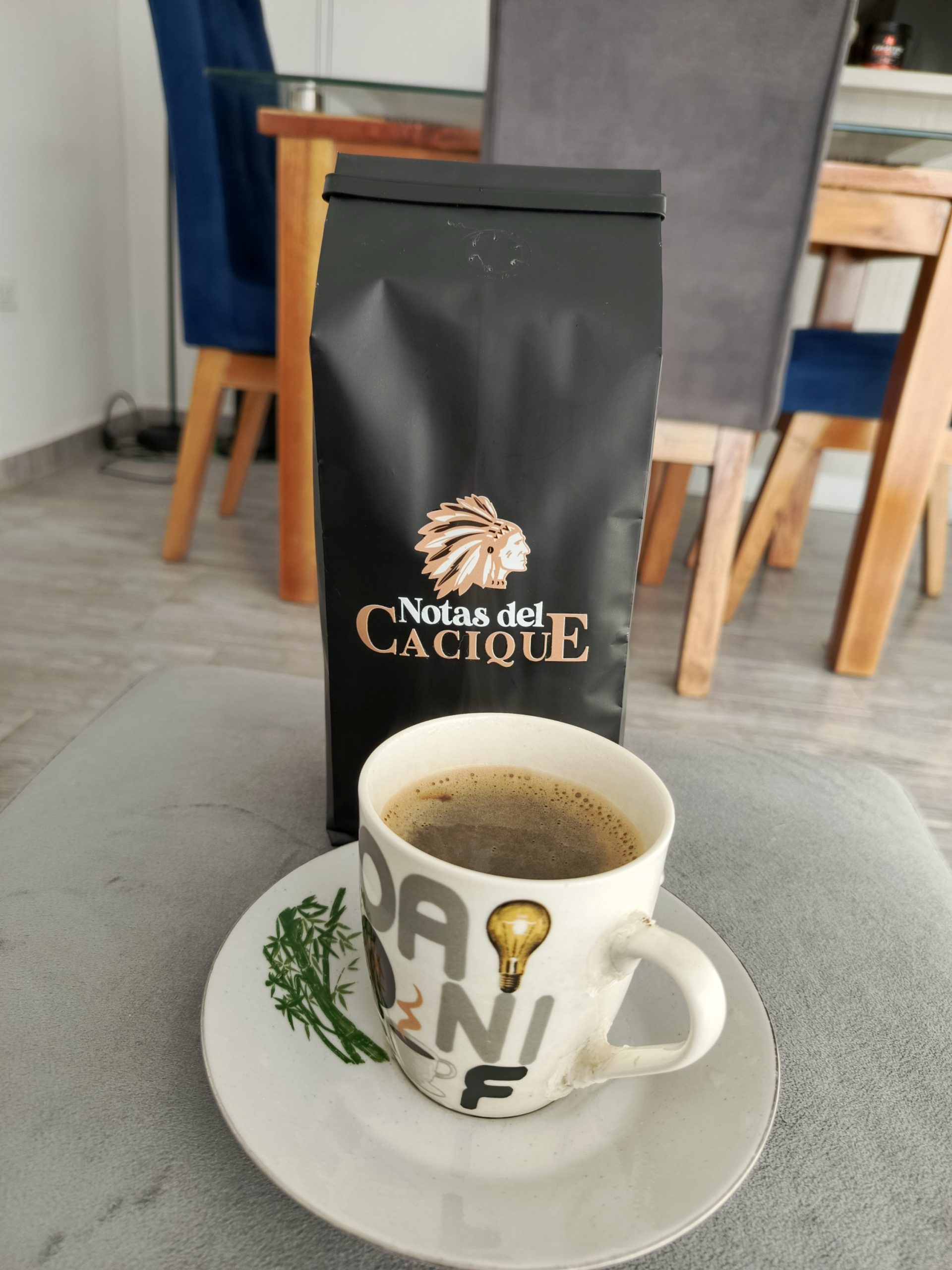 Notas del CACIQUE café Excelso tipo exportación. tostion media alta 7 de 10. Granos seleccionados. Variedad Cenicafe. pídelo en grano o molido. 85.1 puntos SCA